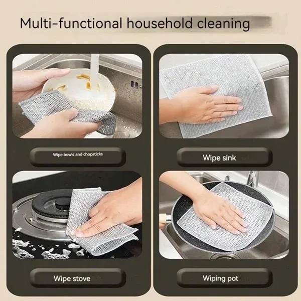 - 【 Widely Used This Steel Wire Dishcloth can be used to clean kitchen utensils of different materials, such as cook tops, plates, cups, pots, counters, bathtubs, etc.