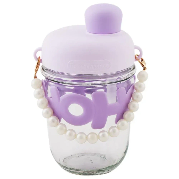 HOHO Aesthetic Glass Sipper Bottle with Designer Pearl Handle Stra